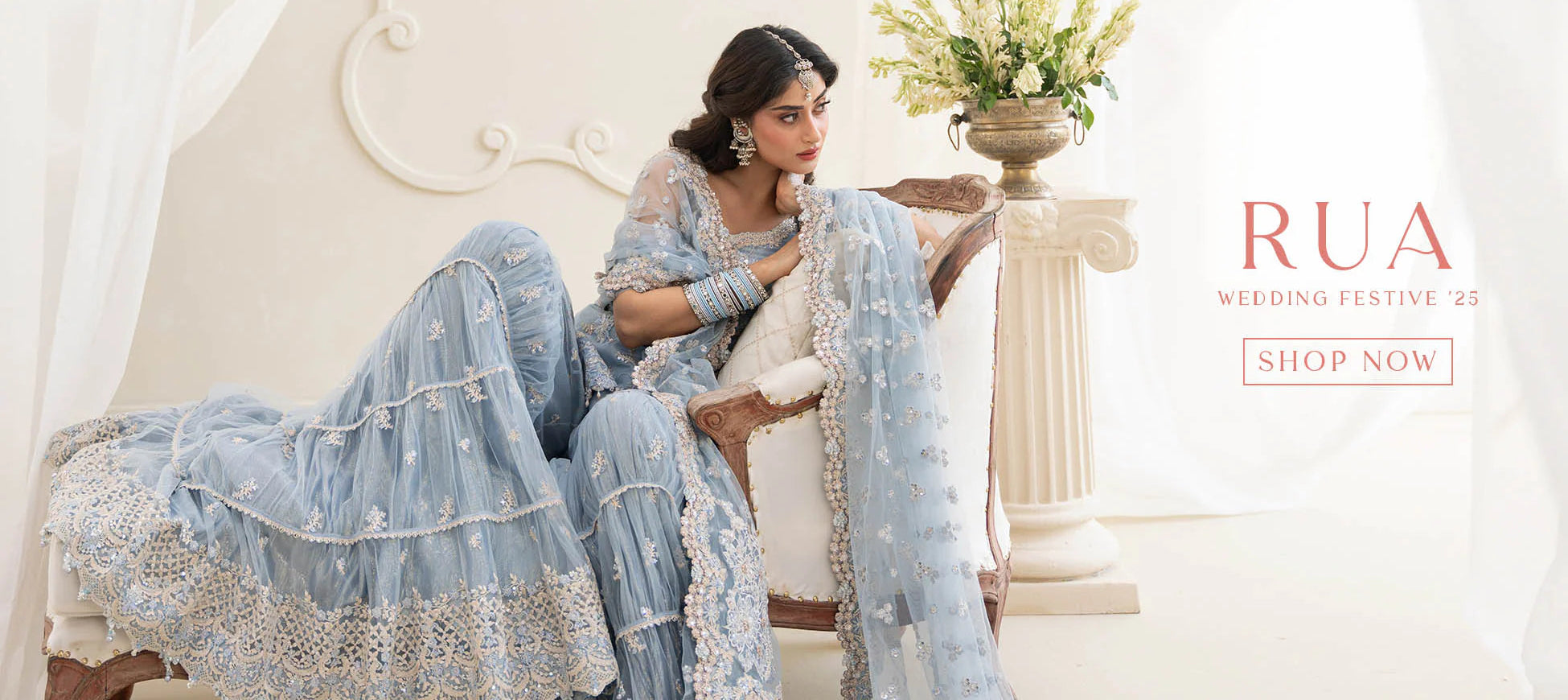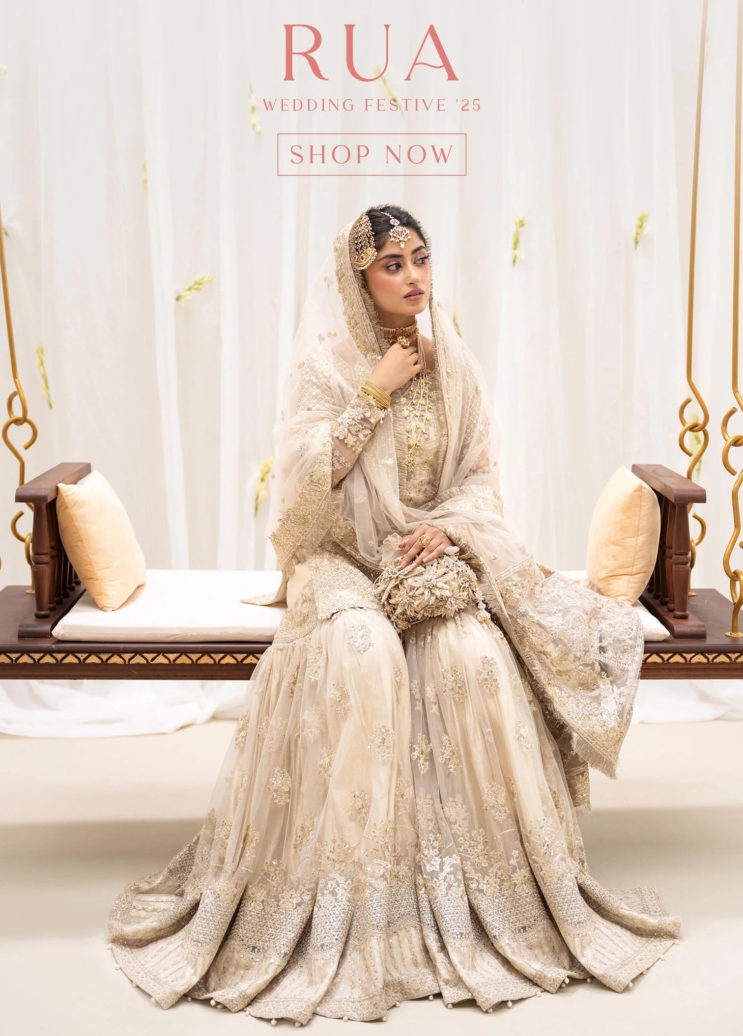 A celestially splendid silhouette, this ensemble feature a detailed Ash White Organza Jacket enhanced with embellishments and cutwork. The splendid organza dupatta is accentuated with Embroidered Borders, paired with Crushed Sharara Pants, curating a stunning look and embodying an aura...