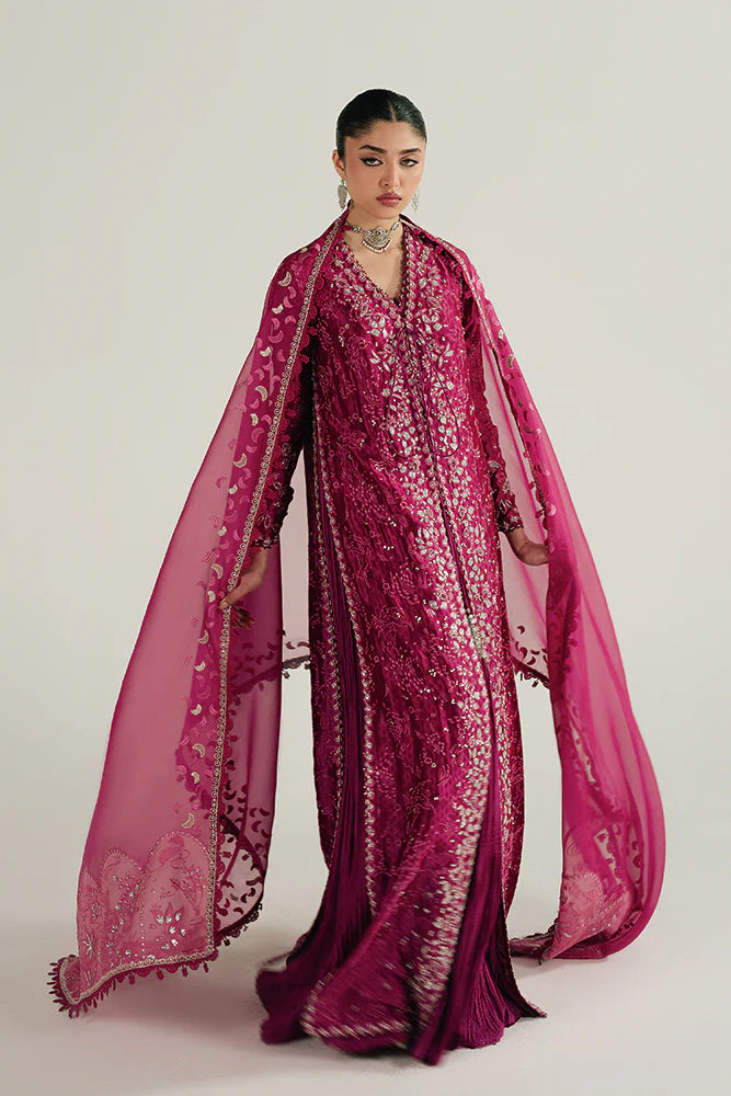 - Layered outfit with inner dress and embroidered jacket with 3D florals and tassels