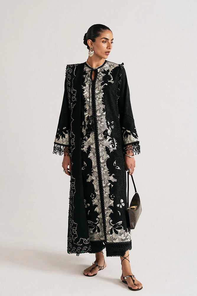 - Dupatta: Black Chiffon dupatta with four-sided white embroidered border, laces, and tassels.