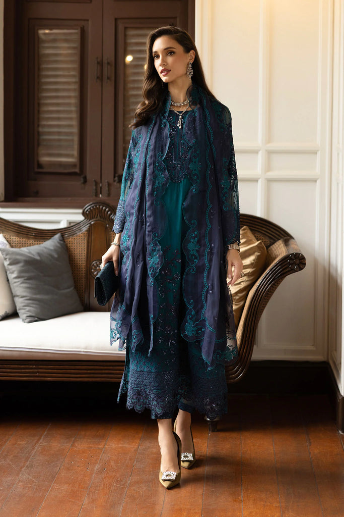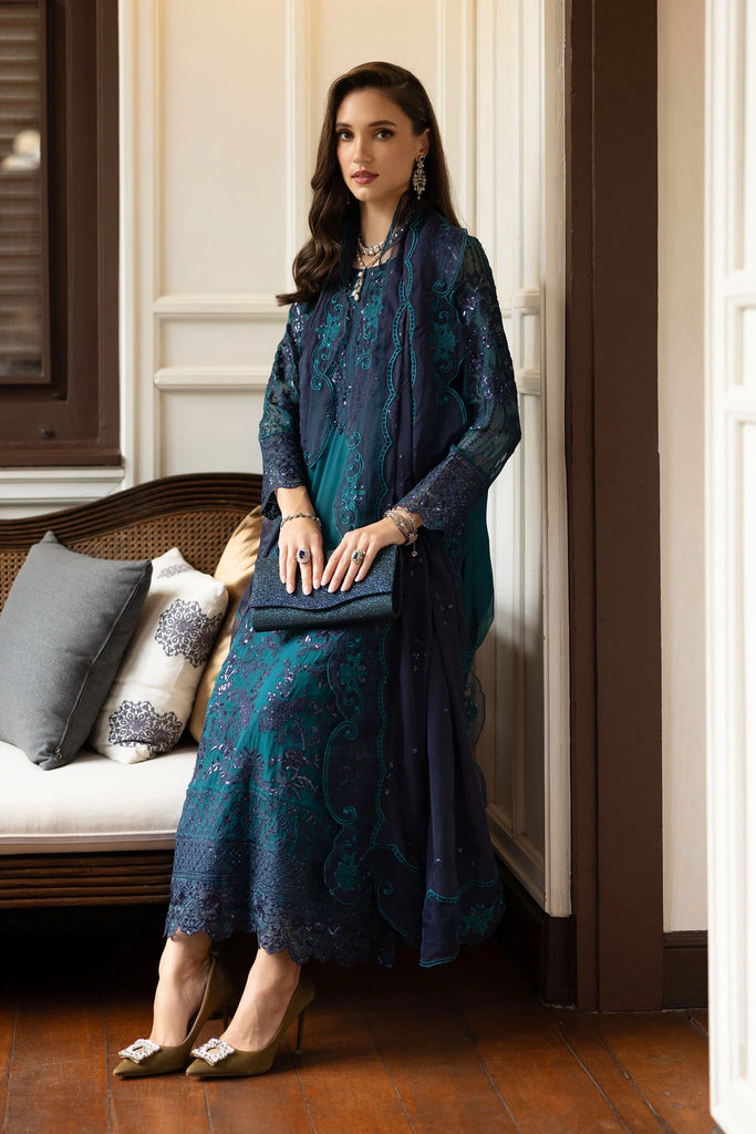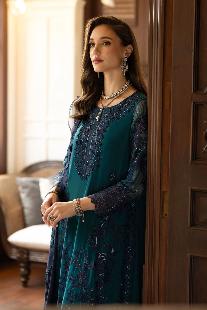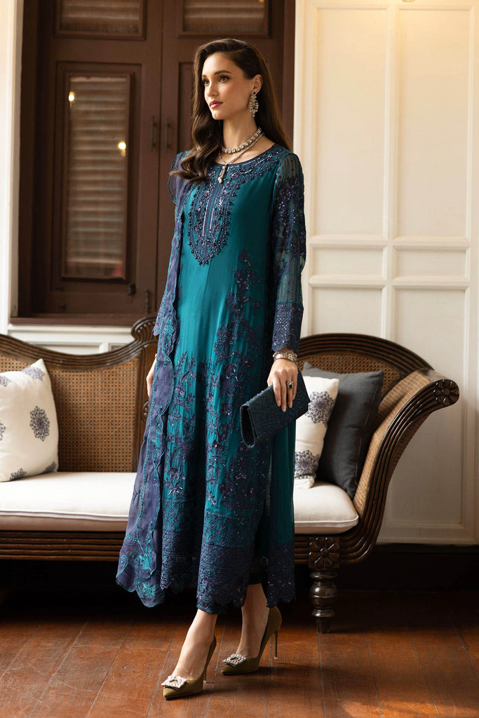 MARIA B - Embroidered Chiffon Suit SF-EF26-14-Teal – Qamaash
