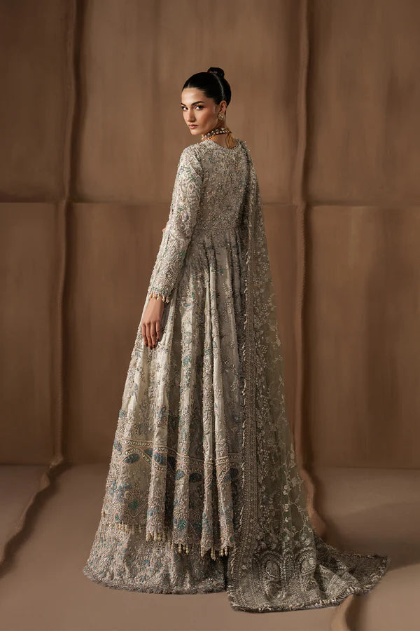 A beautiful pastel gold lehenga brought to life through intricate hand-embellishment, with flowing paisley and botanical motifs lending depth and quiet movement to the silhouette. The structured blouse is finely detailed to echo the richness of the skirt, offering balance and understated elegance. A sheer dupatta, softly edged with delicate accents, drapes effortlessly to lighten the ornate base. The look is rooted in subtle grandeur — timeless, composed, and defined by craftsmanship that speaks gently rather than loudly.